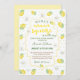 Bonito, aquarela, convite para chá de fraldas de limão floral amarelo. Todos os elementos são escolhidos para trazer boas vibrações, com uma mistura de cores de verão: amarelo-claro, branco e verde-grama. O contexto charmoso com pontos, juntamente com a escrita manual moderna e elegante escrita, torna este design perfeito para as celebrações do chá de fraldas de Verão.