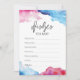chá de fraldas azul e cor-de-rosa 'Deseja receber o bebê' para os convidados preencherem.