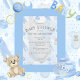 Adorável convite para chá de bebê azul. A roupa de bebê torna este convite muito doce para o seu evento especial. Molho aquoso em azul.