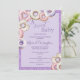 Um Bebê Doce está a caminho com rosquinhas cor-de-rosa e roxas em aquarelas pastel moles, formando um quadro de brilho "doce" em torno de um convite para o chá de uma menina fofa. Simples como "doce" como pode ser & perfeito para o seu evento.