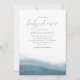 O convite para chás de fraldas costeiros elegante apresenta um gradiente de cor azul de lagoa ao longo do fundo, com uma curva graciosa que evoca a subida e o fluxo do mar. Os detalhes do seu chá de fraldas aparecem em letras clássicas minimalistas com acentos de script escritos à mão.