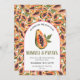 Este convite para chá de fraldas apresenta um padrão aquarela de mamão com a punny legenda "mamaya and papaya".