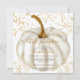 Chamada de chá de fraldas de abóbora branca e dourada confetti com uma tipografia de fontes elegante, com uma bonito abóbora branca de outono e aquarela, perfeita para a estação do outono e Halloween.