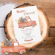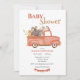 Bons animais da floresta de cor aquática cavalgando em um caminhão de safra. Os vermelhos e castanhos fazem este simples convite perfeito para a celebração do seu bebê. 100% de satisfação do cliente com o "Zazzle"