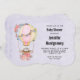 Chá de fraldas com um adorável design com uma ilustração de aquarela. Um balão de ar quente decorado com flores bonito, vermelhas e rosa. Um pequeno ursinho branco giro sentado na cesta. Fundo roxo de estilo de vintage.