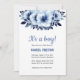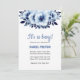 Convites Chá de fraldas de Aquarela de Flor Azul Claro