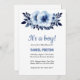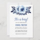 Convites Chá de fraldas de Aquarela de Flor Azul Claro