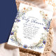O "Convite à Chá de fraldas de Aquarela de Flores Selvagens Azuis" é elegantemente desenhado para dar o tom a uma celebração alarmante. Apresenta uma bela coroa composta por flores silvestres azuis e verde delicado, enquadrada por tons brancos e ouros macios. Este design capta lindamente a essência da natureza e da tranquilidade, fazer-o ideal para um chá de fraldas sereno e na moda. A técnica de aquarela adiciona um toque de arte, valorizando o tema naturalista, enquanto a tipografia clara e graciosa complementa lindamente o arranjo floral. Este convite é perfeito para aqueles que procuram celebrar novos começos cercados pela beleza da natureza.