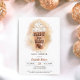 Frappé para bebê! Celebre o calor do outono com nosso Convite para Chá de fraldas temático Café de Queda. Apresentando uma ilustração feita de café frappé, desenhada à mão, com cor d'água, adornada com delicioso creme chicoteado, faíscas brilhantes e chips de chocolate. As letras escritas à mão personalizadas escrevem 'Frappé for Baby', com um pano de fundo de salpicos de aquarela e de café em tons ricos de marrom, chocolate e bege. Prepare-se para brindar ao mais novo membro da família com um borrão de felicidade infuso de cafeína!