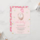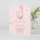 Pequeno ouriço bonito e balões cor-de-rosa oh baby, um convite para chá de fraldas de cor de água de flor branca e dourada, com uma elegante tipografia de fontes de script.