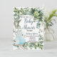 Esta bela design de aquarela apresenta um adorável periquito azul-bebê sentado entre muitas folhas verdes. Ele apresenta uma variedade de paletas verdes, pretas e azuis com uma combinação mista de lindas fontes decorativas. O convite é totalmente personalizável, portanto você pode adicionar seus próprios toques pessoais.