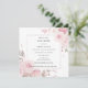 Tão feminino e feminina. Uma rosa rosa rosa rosa floral varre através deste convite para o chá de fraldas. A lavagem de aquarela cor-de-rosa mais macia dá-lhe uma vibração moderna. O padrão floral rosa varre da esquerda para a direita e termina com um perigo botânico. Bela vibração rústica. A parte de trás do convite tem florais cor-de-rosa ao longo do fundo e movendo para cima o lado esquerdo para equilibrar.