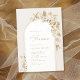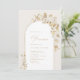 Esses elegantes convites para bebês apresentam ilustrações florais botânicas de ouro falsas, enquadram uma delicada linha de ouro em forma de arco. Sua informação aparece em um roteiro romântico e fonte sofisticada de serif. Excelente para festa de chá de fraldas de jardim. Veja todas as peças correspondentes na coleção.