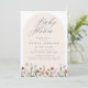 Um convite bonito ao chá de fraldas com um arco esmagador, flores silvestres de aquarela e caligrafia cinza.