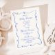 Celebrar a futura mãe com os nossos convites para o chá de bebê esquisitos e caprichosos! Este convite apresenta uma bela fita desenhada à mão num estilo divertido e lúgubre com um quadro rabugento ao seu redor, acompanhada por uma fonte casual e escrita à mão que captura perfeitamente o entusiasmo e a alegria da ocasião. Os convites vêm em um esquema de cores divertidas de névoa e azul de cobalto.