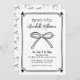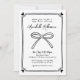 Convite para Chás de fraldas Elegante Preto e Branco. Celebre a chegada com esse eterno e design sofisticado, perfeito para um chá de fraldas na moda. O convite apresenta um belo arco preto desenhado à mão, colocado sobre um fundo branco limpo. Os detalhes são apresentados em uma mistura de fontes clássicas sans serif e guiadas manuscritas em preto elegante, criando um aspecto refinado e chic. Este simples, mas elegante design é ideal para um lanche de chá de fraldas, chá de tarde, ou uma reunião íntima com amigos e familiares. A paleta escura e branca minimalista garante que complementa qualquer tema, acrescentando um toque de elegância subestimada ao seu evento. Totalmente personalizável, você pode ajustar texto, fontes e outros elementos para torná-lo exclusivamente seu. Disponível como convite impresso ou arquivo digital, é a maneira perfeita de anunciar sua celebração com sofisticação do eterno.