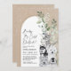 Querida, está frio lá fora! Convide seus convidados com este elegante convite para chá de fraldas de inverno de vassoura com animais árcticos (urso polar, pinguim, foca, rouco, rena-bebê, leopardo-da-neve) e verde-água em fundo de textura de rústica. Personalize o convite com seus detalhes e se quiser reorganizar o estilo e posicionamento do texto, pressione o botão "Clique para personalizar mais".