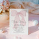 Este belo convite para chás de fraldas cor-de-rosa é a forma perfeita de anunciar a sua celebração especial. Com um design charmoso, sotaques cor-de-rosa macio e texto personalizável, ele é na moda e feminino. Perfeito para honrar a mamãe a ser e sua pequena princesa. Edite facilmente os detalhes do evento e crie uma impressão duradoura para os seus convidados.