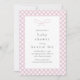 Celebrar a mãe a ser com o nosso design de chá de fraldas rosa moderno, simples e elegante — este design apresenta um simples arco desenhado à mão, uma xadrez estilizada de cor-d-água rosa e uma tipografia elegante.