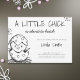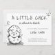 Convite para chá de fraldas bonito em cores preto e branco. A ilustração é uma ave bebê eclodindo de seu ovo. Este convite foi ilustrado e desenhado por Patricia Alvarez.