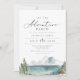 Este convite de chá de fraldas apresenta uma cena de lago de montanha rusticida com aquarela e uma fonte elegante de script. Isto faz a adição perfeita ao seu chá de fraldas de montanha rusticado. Edite com facilidade o texto *maioria* para atender às necessidades do seu evento.