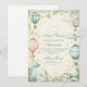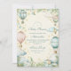 Um design de cor d'água sonhador com balões de ar quente pastel flutuando entre estrelas, nuvens e verde. Esse temático caprichoso cria uma atmosfera suave e encantadora perfeita para celebrar uma nova chegada.