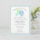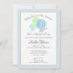 Marque uma nova aventura para receber o bebê com nossos doces balões de ar quente gingham. Chá de bebê azul Elegante, convite para mamães e pais em azul, menta e primavera verde. Personalize como preferido.