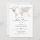 Este convite para chás de fraldas apresenta um mapa de cores do mundo, trilha de avião do coração e uma fonte elegante de script. Este convite é perfeito para o seu viagem ou chá de fraldas temático de aventura neutro por sexo. Edite com facilidade o texto *maioria* para atender às necessidades do seu evento.