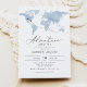 Este convite para o chá de fraldas apresenta um mapa de cor azul-d-água empoeirado, trilha de avião cardíaco e letra elegante do roteiro. Este convite é perfeito para o seu viagem ou chá de fraldas temático de aventura neutro por sexo. Edite com facilidade o texto *maioria* para atender às necessidades do seu evento.