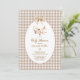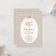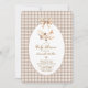Celebre a chegada do seu pequeno com nosso charmoso convite para chás de fraldas, projetado para dar o tom perfeito para seu evento especial. Apresentando um delicioso cavalo de balanço e um arco na moda contra um fundo marrom quente e gingham bronzeado, este convite inspirado no boho capta a essência de uma acolhedora e acolhedora reunião. A sua elegante design não só transmite a alegria da ocasião, como também serve como uma bela guardiã para os hóspedes. Torne o seu chá de fraldas inesquecível com este belo convite que reflete o seu estilo único e o seu amor pela sua família em crescimento.
