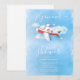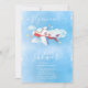 Convite para chá de fraldas de avião bonito com um modelo de convite que é fácil de personalizar. Apresentando um fundo azul do céu, um avião vermelho, branco e azul, nuvens, estrelas e texto que diz 'voar sobre' em uma fonte de script. Todos os estilos de fonte, tamanhos e cores de fundo podem ser alterados clicando no link personalizar depois de personalizar.