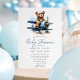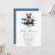 Prepare-se para celebrar com este adorável convite de chá de fraldas de avião para ursos de pelúcia. Apresentando um ursinho de pelúcia a aquarela vestido como um pequeno aviador num avião azul-vintage, este convite é perfeito para o chá de fraldas de um menino com um tema aventureiro. As cores suaves e o design encantador fazem dela uma escolha encantadora para os pais esperando um menino que esteja pronto para voar.
