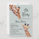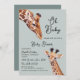 Mama bonita e girafa bebê ilustram convite para chás de fraldas neutro em relação ao gênero