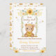 Este convite de chá de fraldas de aquarela giro e caprichoso apresenta um adorável urso de mel num balanço, abelhas e arranjos florais. O texto combina o script manuscrito e as fontes sans serif para uma aparência na moda e moderna. Isto é perfeito para uma abelha ou um chá de fraldas com tema.
