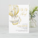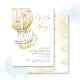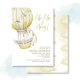 Convite para Chá de fraldas de Balão de Ar Quente para Cima e Fora, em ouro amarelo perfeito para um chá de fraldas neutro em termos de gênero.