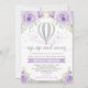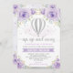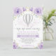 Convites Chá de fraldas de balão de ar quente de prata roxa