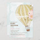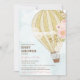 Convite ao chá de fraldas Apresentando um floral cor-de-rosa com pincel pastel e um balão de ar quente dourado. Texto totalmente personalizado para qualquer ocasião.
