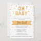 Nosso convite para Chás de fraldas do Balão de Foil de Bebê Gold é a maneira perfeita de convidar seus amigos e família para seu chá de fraldas neutro em gênero. Este convite apresenta 'Oh Baby' em balões de folha de ouro com pontos de confete de ouro espalhados pela frase.