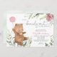 Convites Chá de fraldas de Balão de Urso Verde Floral Rosa