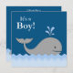Adorável convite para chá de fraldas de baleia azul marinho com uma onda azul na frente e atrás com âncora. Adicione os seus detalhes à frente e/ou atrás adicionando os detalhes do evento, estilo da fonte, tamanho da fonte e cor e texto.