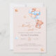 Urso de Teddy com Balões Aguardando Convite Este ursinho está sentado em um balão de ar quente construído com balões azuis, castanhos e creme, esperando pela grande festa do bebê. Aquarelas legal e tipografia moderna fazem o design olhar atrapalhando. você pode personalizar este convite para o chá de fraldas com seus próprios detalhes de chá de fraldas pressionando o botão personalizar.