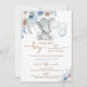 Convites Chá de fraldas de Balões de Elefante Floral Azul