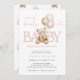 Este adorável convite de chá de fraldas de menina apresenta um ursinho de pelúcia giro vestindo uma gravata de arco rosa segurando balões rosa e dourados. Está seguindo a tendência de "podemos esperar" e fará o convite perfeito para o chá de fraldas do ursinho de pelúcia da sua bebê. Use os campos modelo para adicionar suas informações e personalizar este convite. Entre em contato com o designer se precisar de assistência para adicionar suas informações.