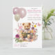 Bem-vindos ao seu belo anjo no mundo com este Chá de fraldas de Balões Rosa Flóridos de Urso Justo! Ponha o tom para o seu dia especial com este design elegante e elegante, com um delicioso ursinho de pelúcia a ler um livro rodeado de flores giratórias e uma borboleta cativante em tons de rosa, roxo e amarelo. Que todos fiquem envoltos em sua beleza quando você enviar estes convites encantadores - saltados com as pintas moles e creme dos balões flutuando acima dele, eles fazem com que seja fácil dar a este evento notável o sentimento de verdadeira sofisticação. No verso está um padrão floral que corresponde igualmente encantador e que lhe dá um toque perfeito de acabamento. Com muito espaço para personalizar seus detalhes, essas cartas adoráveis permanecerão como um guardião de precioso muito depois que seu dia especial passar. Entre em contato com o designer para produtos correspondentes. Copyright Anastasia Surridge for Elegant Invites. Todos os direitos reservados.