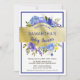 Bem-vindos à sua família e amigos ao seu chá de fraldas por um rapaz ou uma rapariga com estes Convidados Elegantes de Bebê Dourado Rótulo Roxo. Esses convites para chás de fraldas neutros em gênero apresentam um falso crachá metálico de ouro com lindas flores roxas e azuis no topo e no fundo do texto. Personalize estes convites para bebês florais roxos com o seu nome e a data do seu evento.