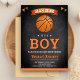 Incêndios para seus convidados com este legal chá de fraldas de basquetebol, convidando a apresentar a tipografia moderna contra um fundo de quadro negro. Basta adicionar os detalhes do seu evento neste modelo fácil de usar para torná-lo um convite de tipo único. Sacudir a placa para revelar um padrão de listras laranja e pretas na parte traseira da placa.