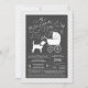 Inclua o grande irmão ou irmã bebê pelado na celebração com este adorável design chá de fraldas de cachorro Beagle! Perfeito para um amante de cachorro com um bebê a caminho. O Beagle está ao lado de uma carruagem adorável. O fundo de cinza de quadro-negro torna-o perfeito para um chá neutro ou coeso!