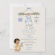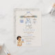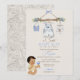 design de chá de fraldas com ramificação de linha de tecido e bebê em marfim e azul.