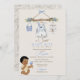 design de chá de fraldas com ramificação de linha de tecido e bebê em marfim e azul.