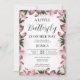 Uma borboleta cor-de-rosa púrpura está a caminho de um convite para chás de fraldas que pode ser personalizado com a inclusão dos detalhes do seu chá de fraldas. As cores são, principalmente, cor-de-rosa com pistas de púrpura nas flores e borboletas. Estes convites poderiam ser utilizados em qualquer altura do ano, mas seriam particularmente adequados a um primavera ou a um chá de fraldas de Verão.